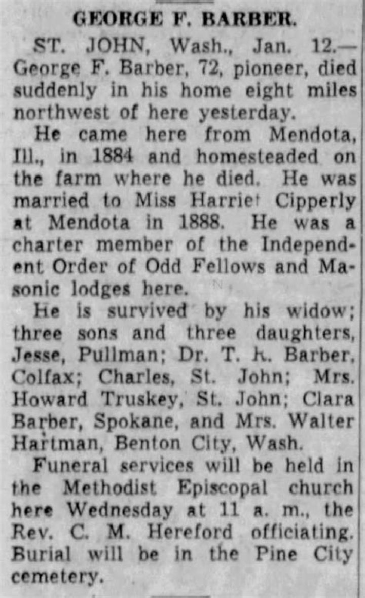 His birthplace was DeKalb County, Illinois, to Lyman and Cornelia Spring Barber. He was moved to the same house with his sister Olive along with her and husband William Barrett, when the age of a child. He stayed with the Barretts at their home on the farm.